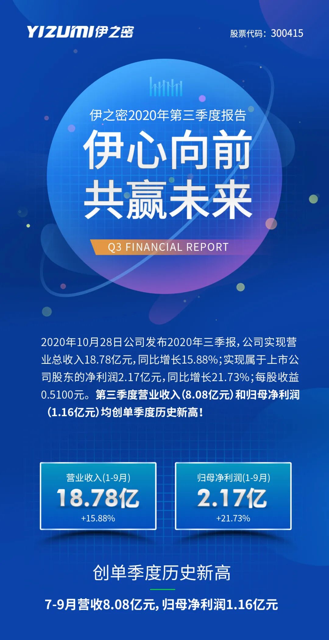 再创新高!伊之密前三季度营收18.78亿元,增长15.88%