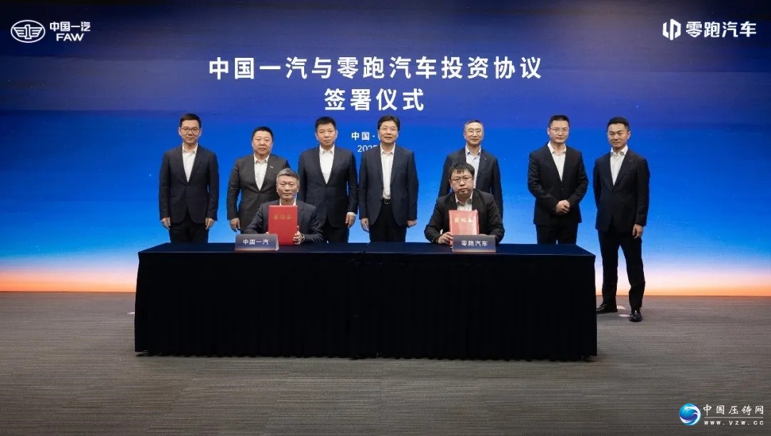 12月28日,中国一汽与零跑汽车在杭州举行签约仪式,中国一汽全资子公司一汽股权投资(天津)有限公司(下称“一汽股权”)和一汽旗新动力(长春)科技有限公司(下称“旗新动力”)分别与零跑汽车签署投资协议和合作协议。