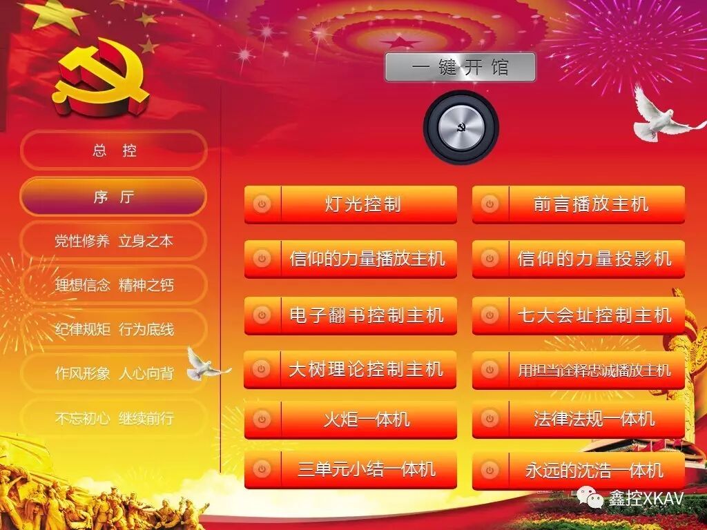 4、一键开启:可对展厅内的灯光、电脑、投影机等时序的开启;