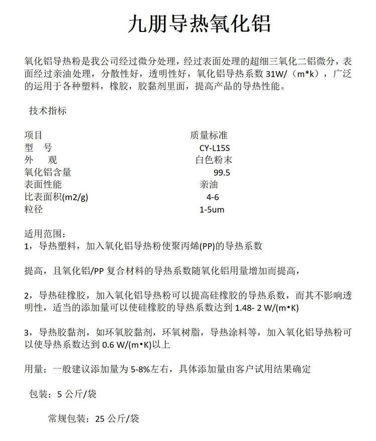 九朋 硅橡胶导热粉 微米级氧化铝 系数高