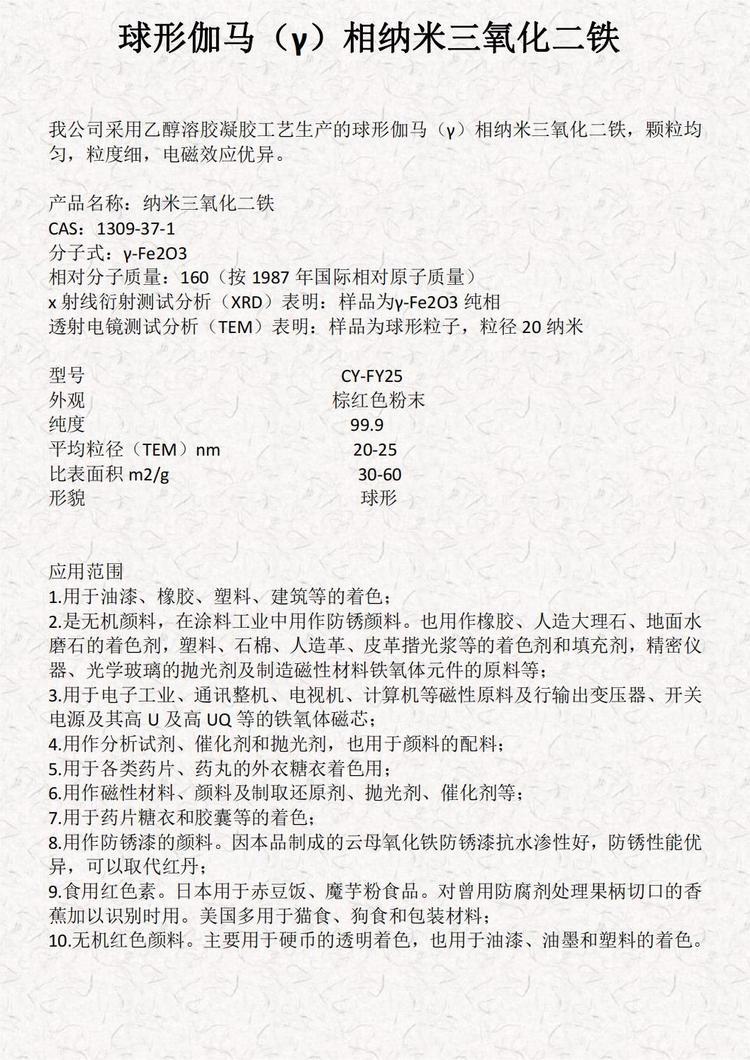 油漆 橡胶塑料专用 球形伽马(γ)相 纳米三氧化二铁九朋