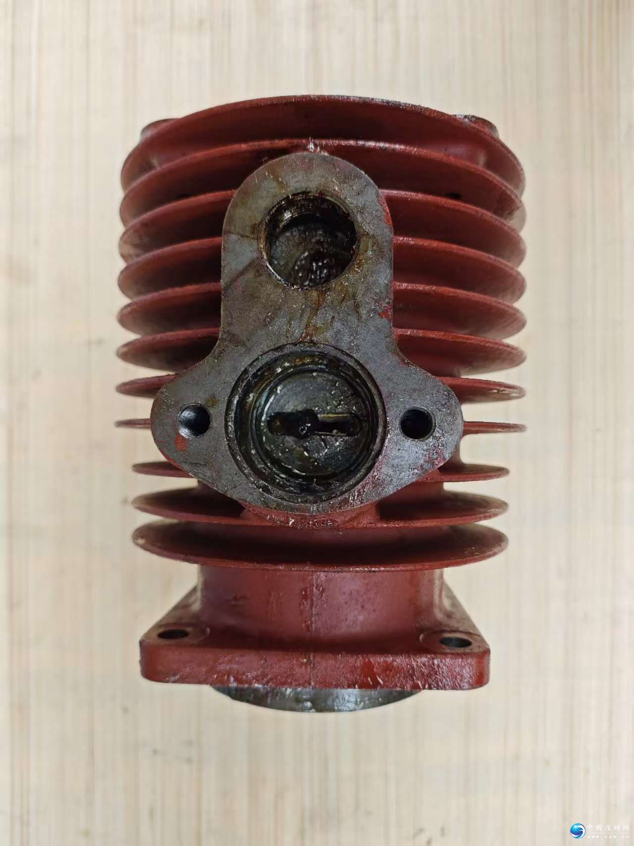 冷却风扇、锁紧装置、二级冷却管、一级冷却管、滤清器、二级排气阀压盖、二级进气阀压盖、二级排气阀、二级进气阀、一级气阀压盖、一级组合气阀、气缸、二级活塞环、一级活塞环、弹性挡圈、活塞销、活塞、活塞销衬套、连杆轴瓦、连杆、螺钉、止推法兰、弹性挡圈、隔套、主轴承、曲轴、油面计、油帽、呼吸器、后盖、弹性挡圈、油封、轴承盖、曲轴箱、皮带飞轮、直联飞轮