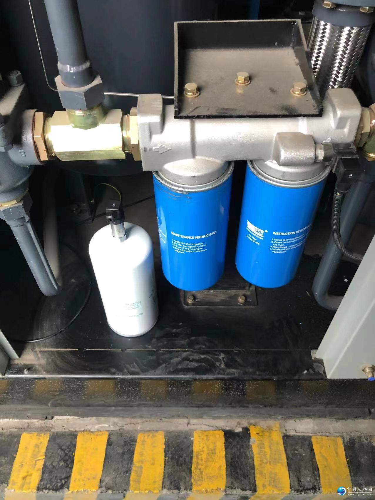 找到空压机的内置油滤,用皮带扳手将其小心拆下。