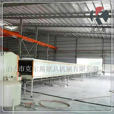 本设备在运转的基础上多次试验改进,具有高效,稳定,节能,钢焊接而成简单易操作等特点。本设备分喷胶布沙段,初次烘干段,面胶段和二次烘干段共70米,通过滚子链往复输送 。