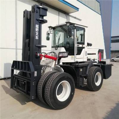 越野叉车从字面意思来看是一种越野能力很强的特种车辆,应用广泛,多用途越野叉车,是用于非公路运输、港口装卸和工厂搬运作业的多功能车辆,它集起重、装载和短距离输送于一体适合于路况条件较差的物资集散地装卸搬运车辆,具有较强的越野性、机动性、可靠性,采用内燃式柴油机提供动力,柴油机热效率高,功率高,排出的气体比汽油少,相对环保,越野叉车适合在恶劣环境下装卸搬运,还可以更换各种属具,多属具来满足不同需求,一车多用,越野叉车四轮驱动,底盘高,山地泥路崎岖道路作业,越野轮胎抓地力强,不打滑