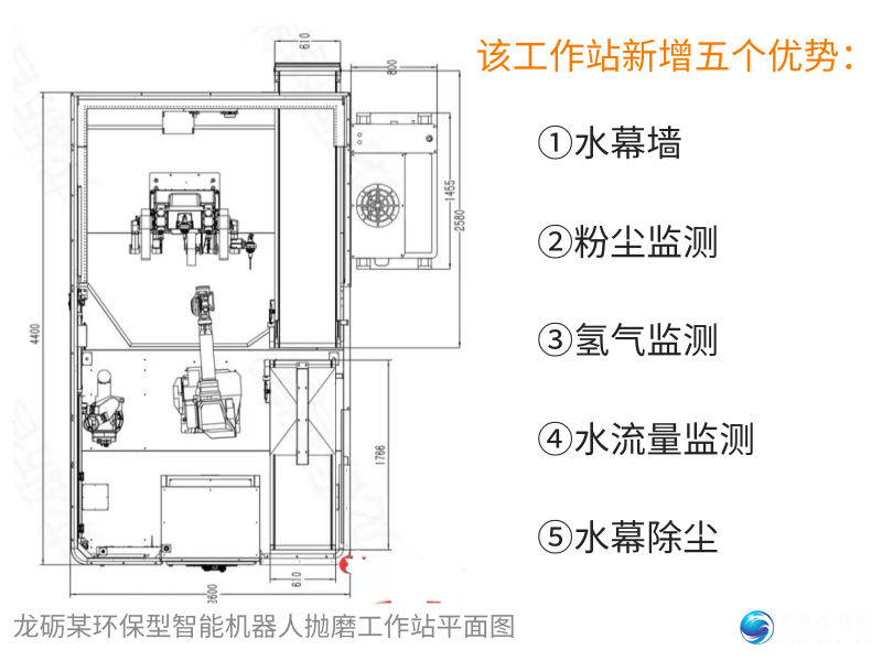 该工作站在传统基础上增加了以下五大模块:①水幕墙,②粉尘监测,③氢气监测,④水流量监测,⑤水幕除尘
