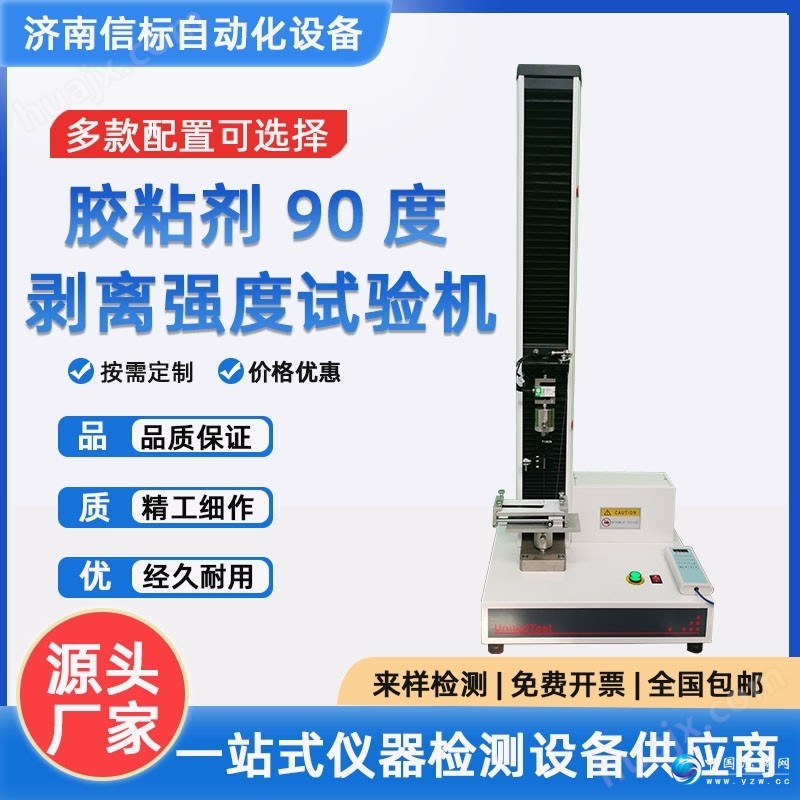 微机控制电子万 能试验机单臂拉力剥离强度采用调速精度高、性能稳定的全数字伺服调速系统及步进电机作为驱动系统,控制器作为控制系统核心,以WINDOWS为操作界面的控制与数据处理软件,实现试验力、试验力峰值、横梁位移、试验变形及试验曲线的屏幕显示,所有试验操作均可以通过鼠标在计算机上自动完成。良好的人性化设计使试验操作更为简便。综合以上各项技术,该机可以近乎的实现试验力、变形及位移等参数的闭环控制,可实现恒应力、恒应变、恒位移等控制模式,并且各种控制模式之间可以平滑切换。该机满足国家标准GB/T228-2002《金属材料室温拉伸试验方法》的要求,同