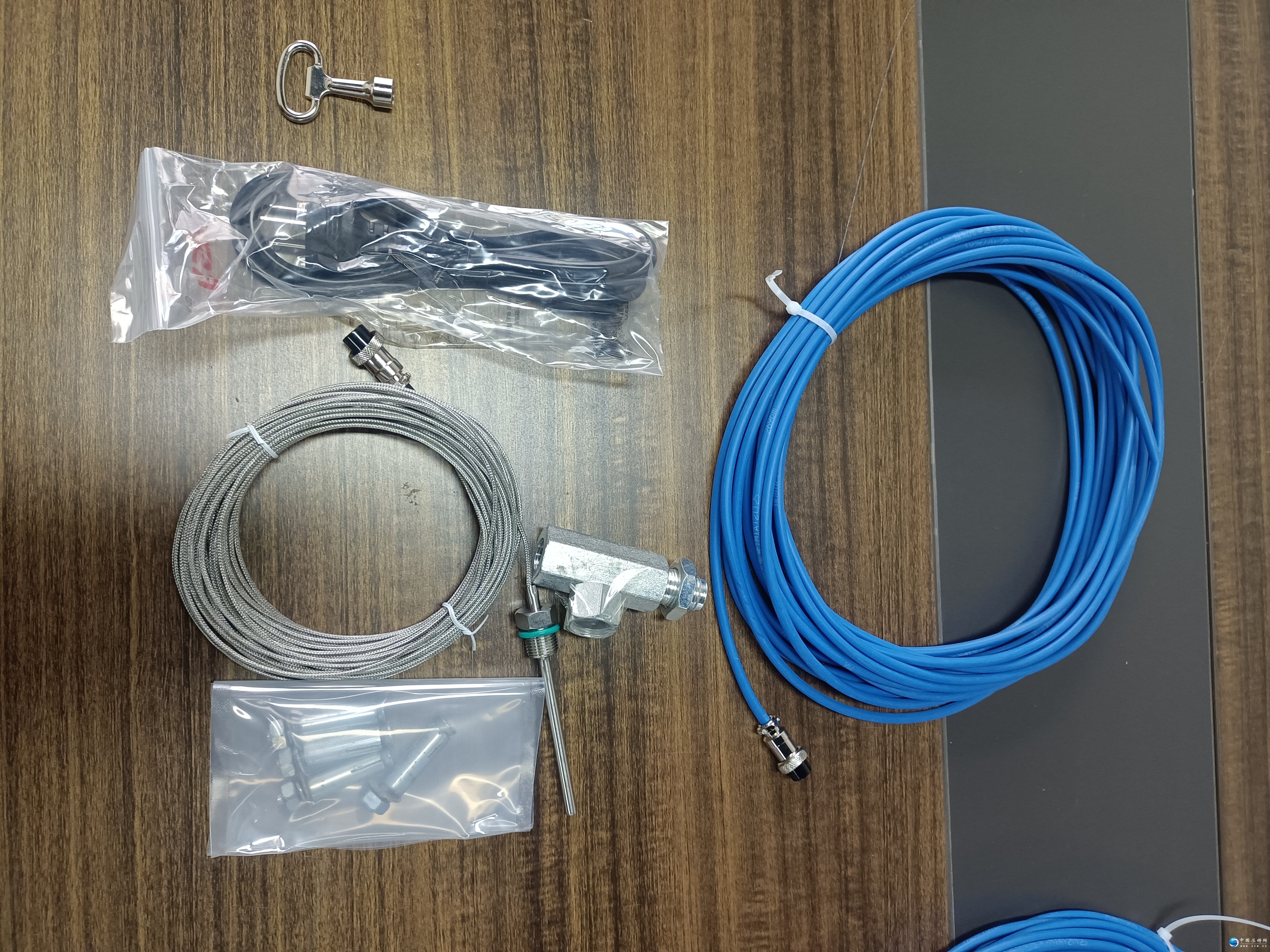 ②将温度传感器与其所配套的三通链接在一起, 在将储气罐(风包)上面的压力表取下,安装在所配三通的压力表接口上,随后把整套的三通外螺纹端旋转连接在储气罐上面的元压力接口处(住:温度传感器的安装必须要配带O型垫圈,防止漏气,压力表的安装即整套三通与储气罐(风包)的连接必须用生胶带做好防漏气处理。)